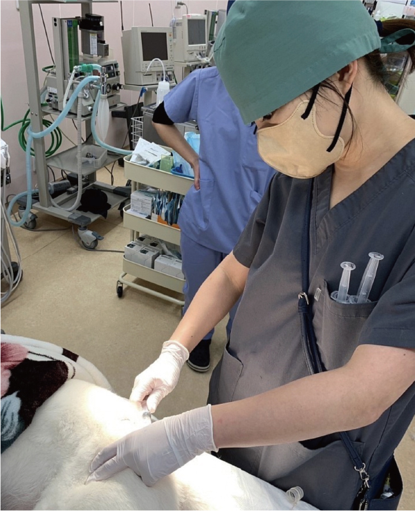 ご家族がどんな不安な気持ちで我々に託してくださっているか、それを忘れずに、ご家族の代わりに寄り添えるような麻酔技術・そして動物への声がけ・ケアを目指しています。いつでも自分の家族に麻酔をかけるような丁寧な獣医療を目指しています。
